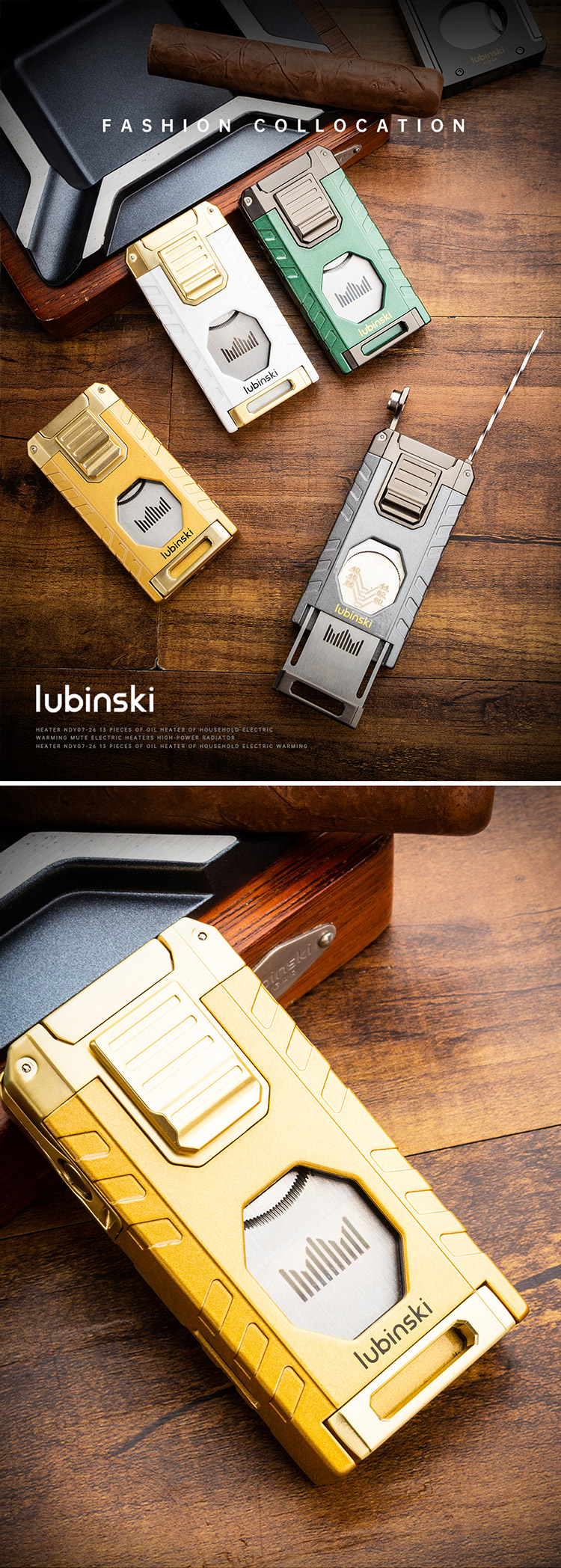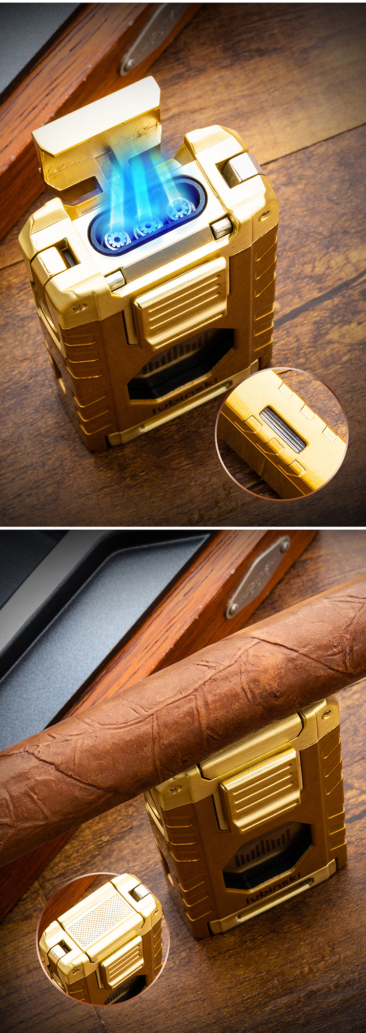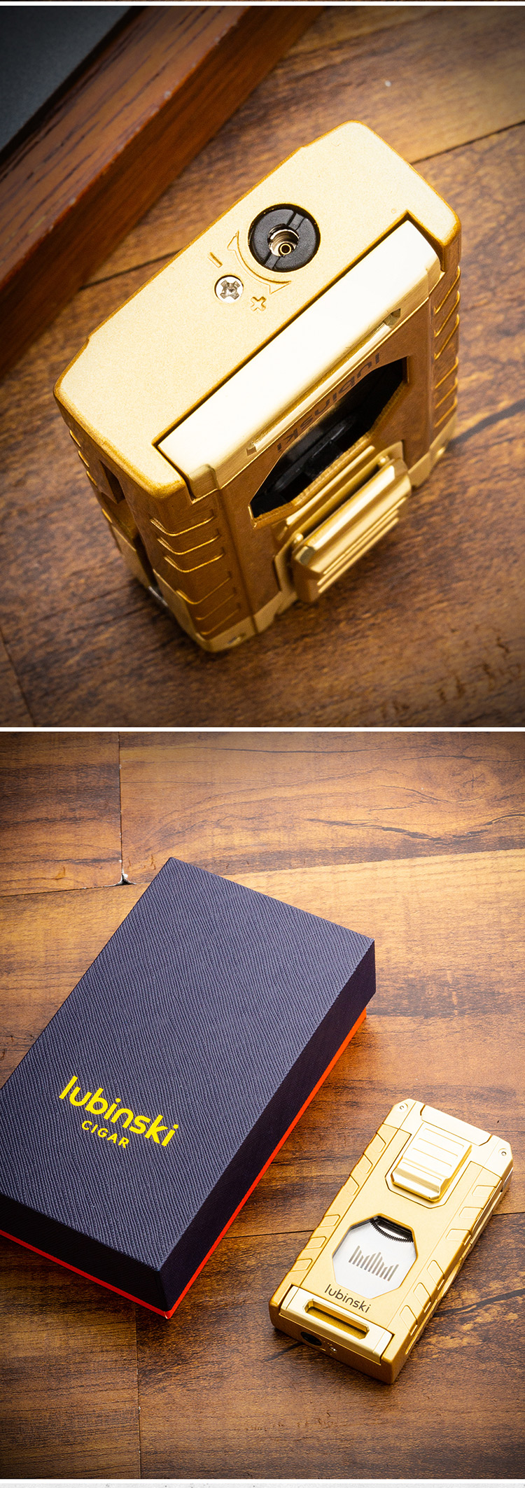 Home    Cigar Lighters    Lubinski 3 Color Multi-functional Third Flame Windproof Cigar Lighter with Cutter Holder YJA-10062