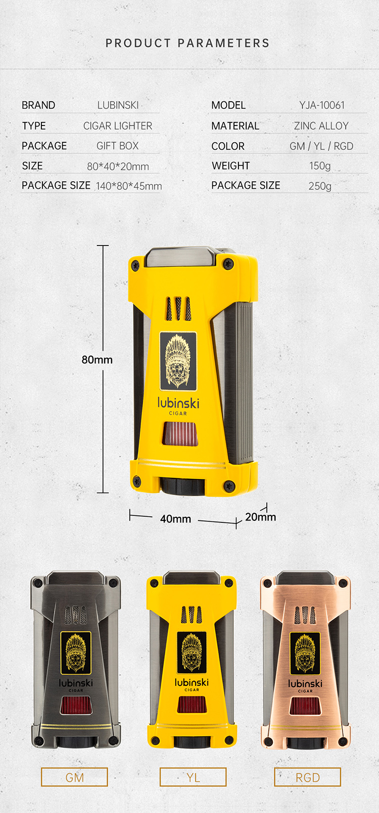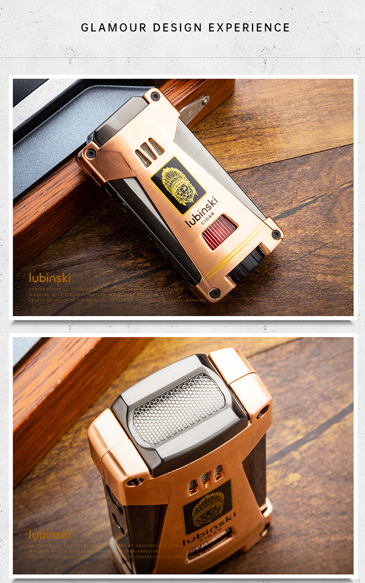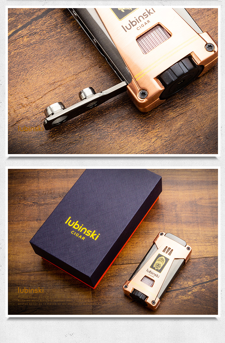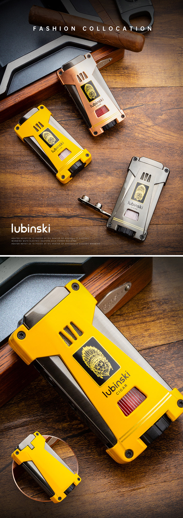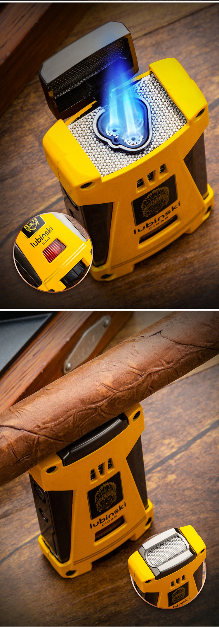 Lubinski Multi-functional 3 Flame Windproof Cigar Lighter with Hole Opener Cutter & Holder Stand YJA-10061