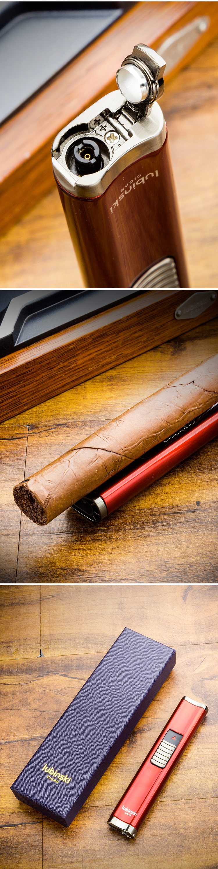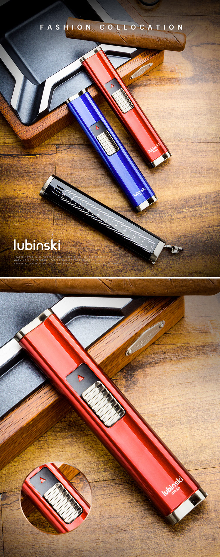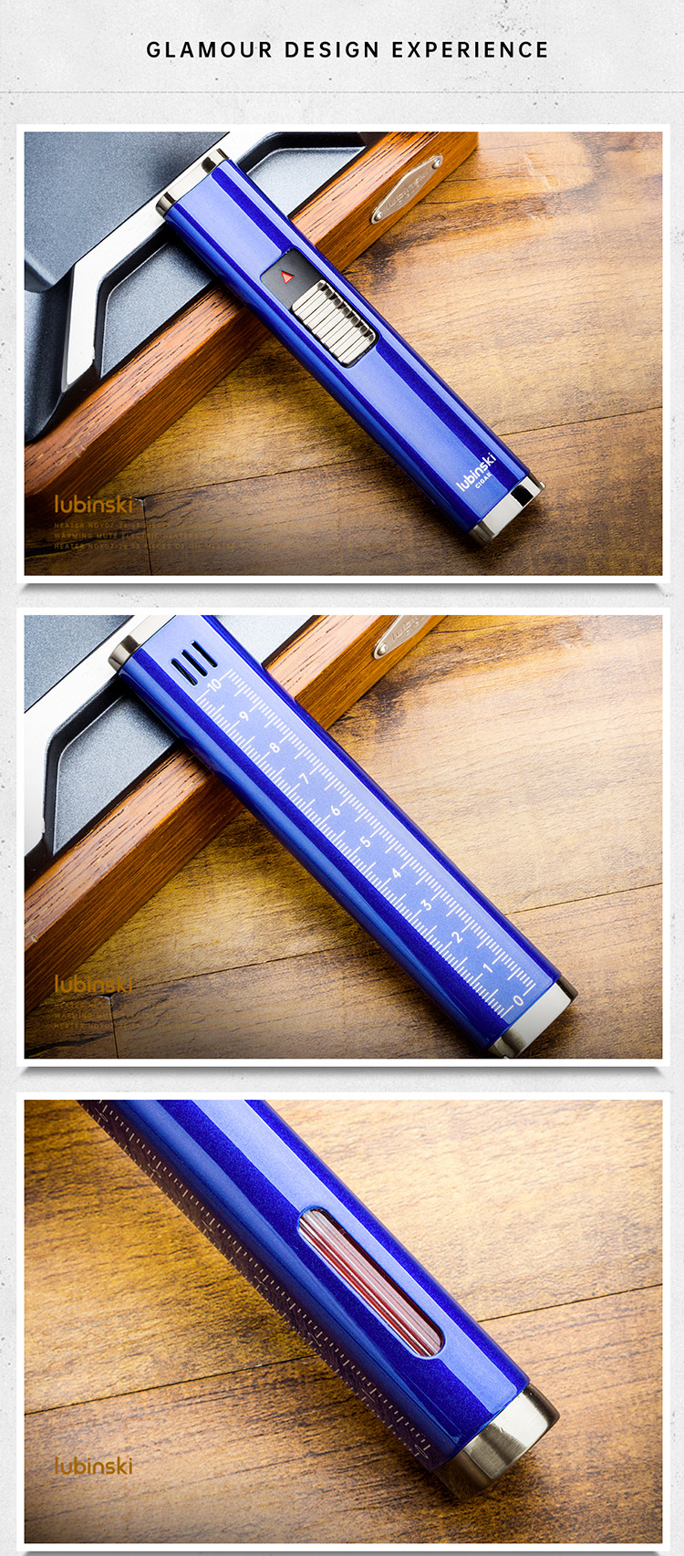 Lubinski Blue Double Flame Concise Scale on the Backside Refillable Gas Lighters YJA-10045