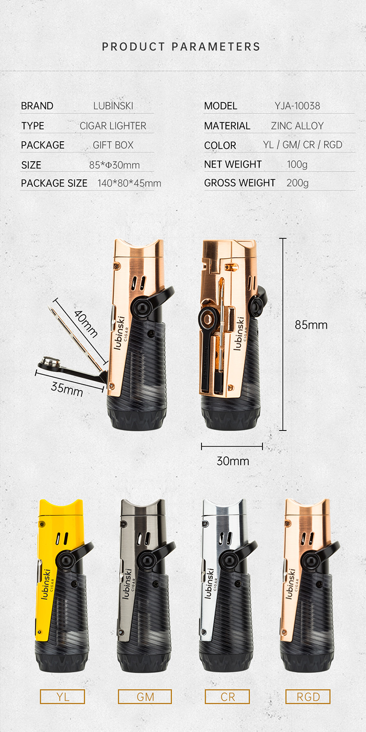 Lubinski Multi-Functional Windproof Refillable Cigar Lighter With Cigar Holder YJA-10038