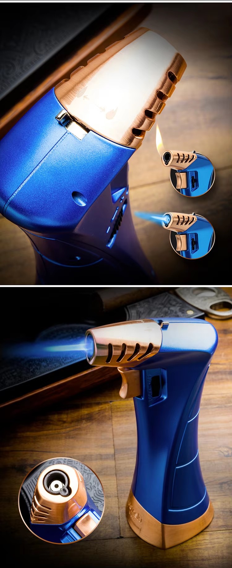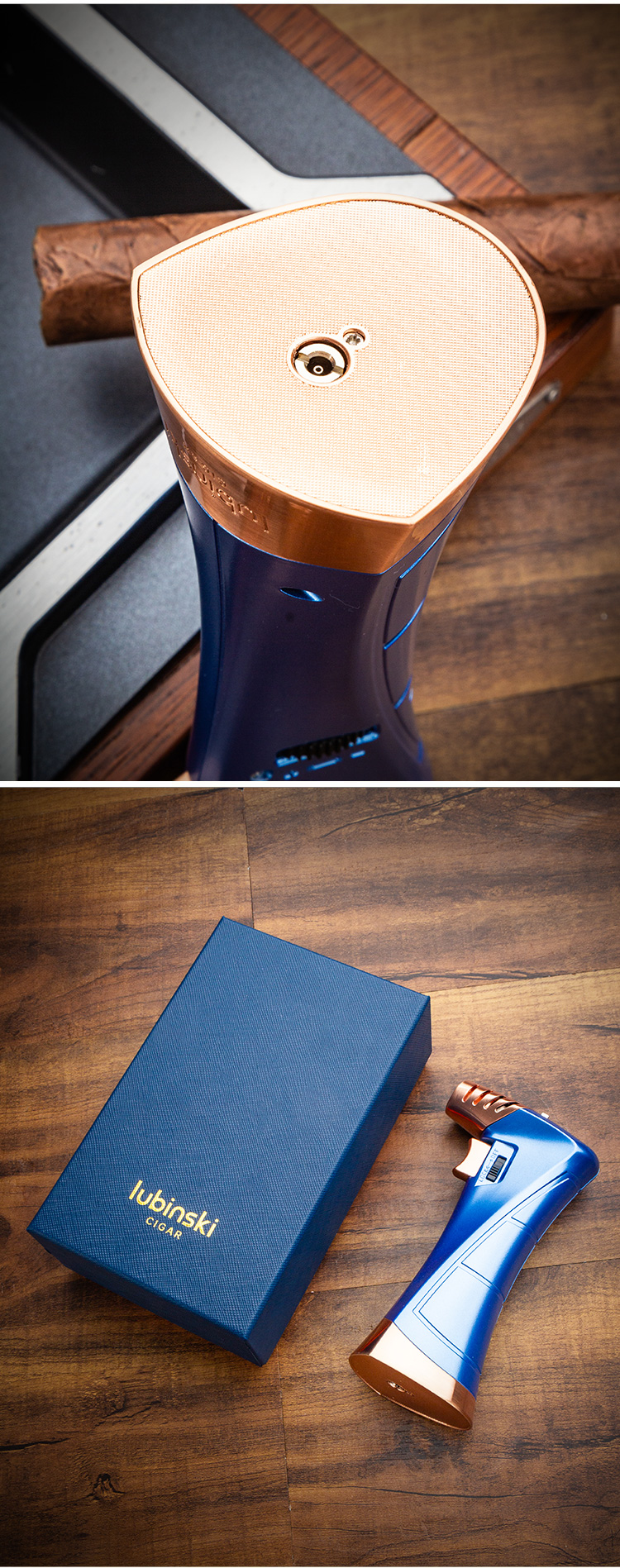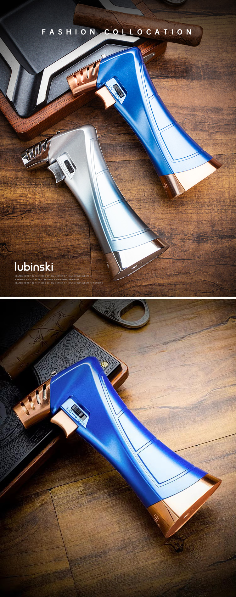 Lubinski Double Flames Jet Torch Cigar Lighter Zinc Alloy Butane Refillable with Cutter & Cigar Stand YJA-10034