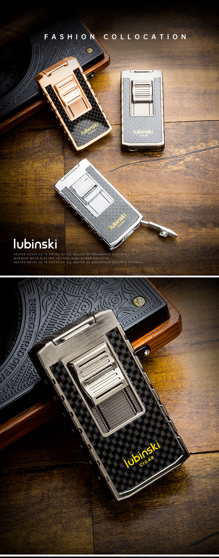 Home    Cigar Lighter    Lubinski Double Flames Jet Torch Cigar Lighter Zinc Alloy Butane Refillable with Cutter & Cigar Stand YJA-10034