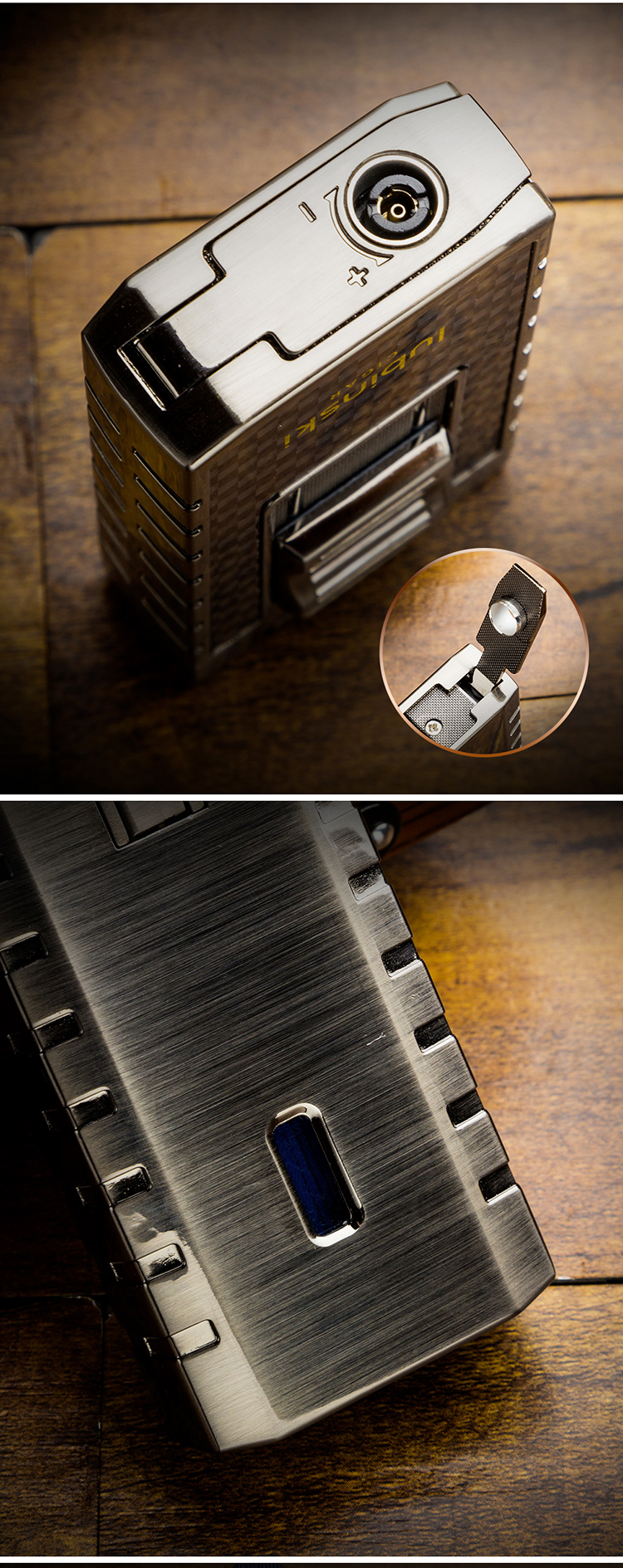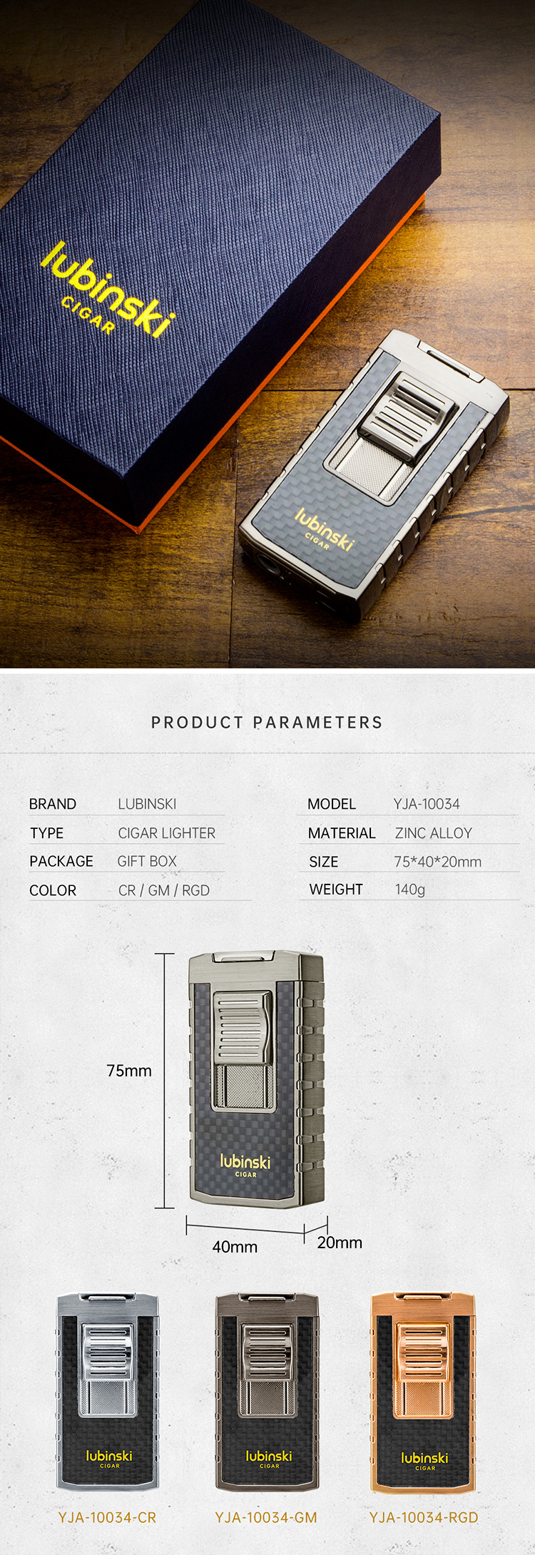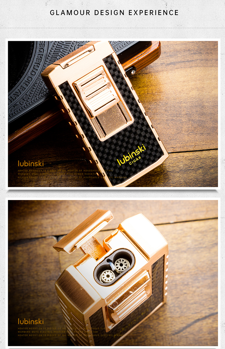 Home    Cigar Lighters    Lubinski Double Flames Jet Torch Cigar Lighter Zinc Alloy Butane Refillable with Cutter & Cigar Stand YJA-10034