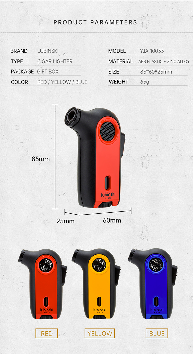 Lubinski Jet Flame Torch Lighter - Butane Refillable Plastic Portable for Cigar/Cigarette YJA-10033