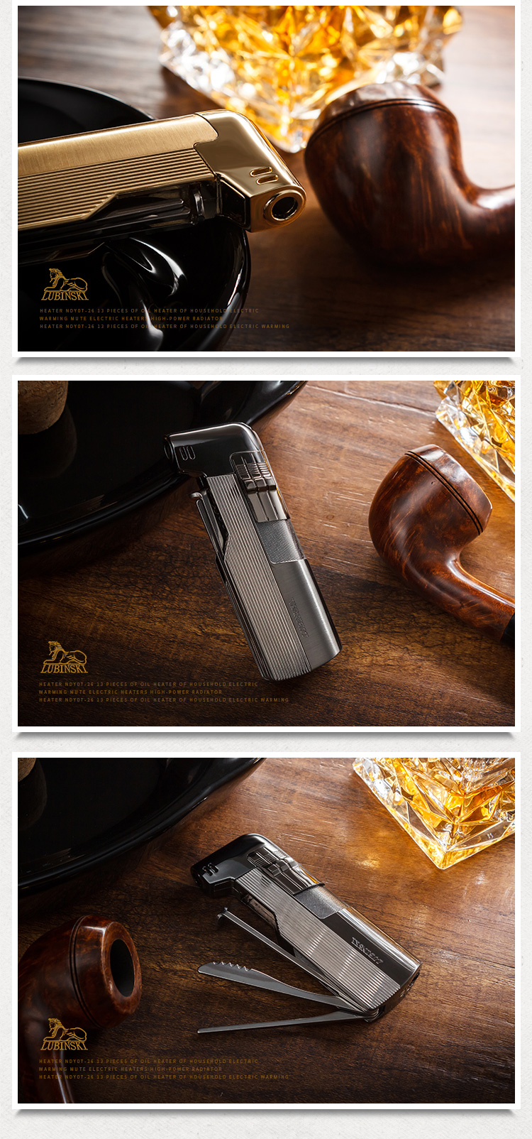 Home    Cigar Lighters    Lubinski Single Flame Pipe Lighter Tamper with Tamper Wholesale SK-24