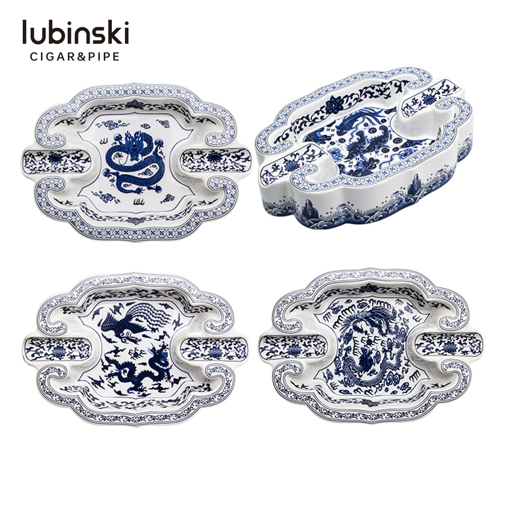 • Lubinski Blue White Porcelain Cigar Ashtray 2-Slot Ceramic Holder Luxury Cigar Accessory Gift Box YJA-20058