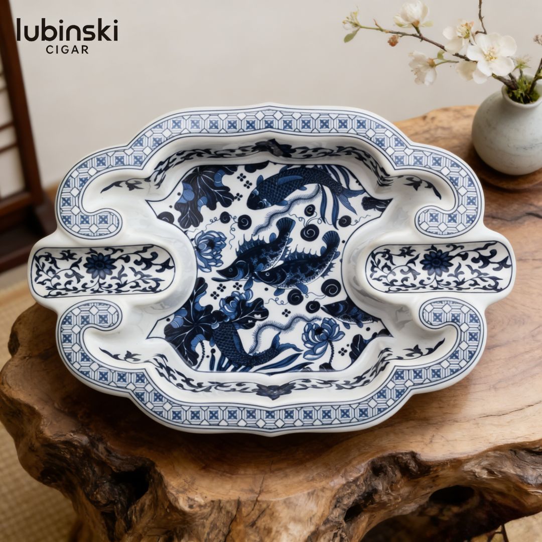 Lubinski Blue and White Porcelain Double-Groove Cigar Ashtray: A Timeless Oriental Elegance for Your Cigar Ritual